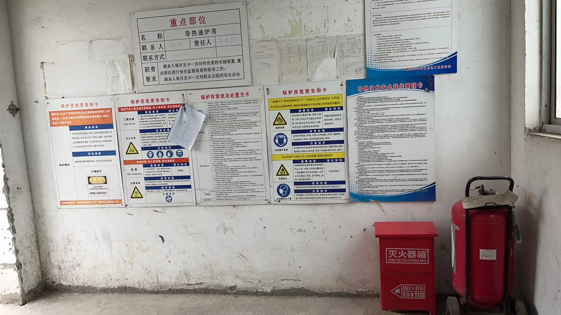 | 项目基本情况 | 泰兴市玉华金龙化工有限公司成立于2004年7月22日,位于泰兴市经济开发区中港路18号。公司法定代表人:毛荣庆,注册资本1500万元,厂区占地面积19040.5m2,其中建筑面积3339.56m2。现有员工28人,其中安全管理人员5人(含1名专职安全管理人员)。2015年4月,企业投资1689万元建成年产100吨间苯三酚、60吨 1,3,5-三甲氧基苯及副产 200吨氯化钾、60吨溴化钠生产线技改项目(一期年产100吨间苯三酚、副产200吨氯化钾),并领取了安全生产许可证,证号:(苏)WH安许证字[M00276],许可范围:间苯三酚(100t/a),有效期至 2026年3月2日。 根据《江苏省化工(危险化学品)企业安全风险评估和分级办法》(苏安监〔2017〕77号),经分析与评估,本公司安全风险等级为一般风险(黄色)。 根据省生态环境厅关于印发《江苏省生物质电厂与锅炉综合治理实施方案》的通知(苏环办[2022]321 号)的有关要求“加快推进4蒸吨/小时以下生物质锅炉淘汰工作,优先淘汰由燃煤改烧生物质的锅炉、难以稳定达到标准要求且技术改造成本较高的炉排炉(层燃炉),推广使用燃气锅炉、电锅炉等清洁能源锅炉”。为了响应省环保厅号召,满足清洁生产的要求,玉华金龙公司对导热油炉系统进行改造,将生物质导热油炉改成电加热导热油炉,附属的油气分离器、导热油高位槽、导热油低位槽、注油泵、循环泵等均不改变。改造后的导热油炉系统无废气排放,达到清洁生产的目的。 | |||