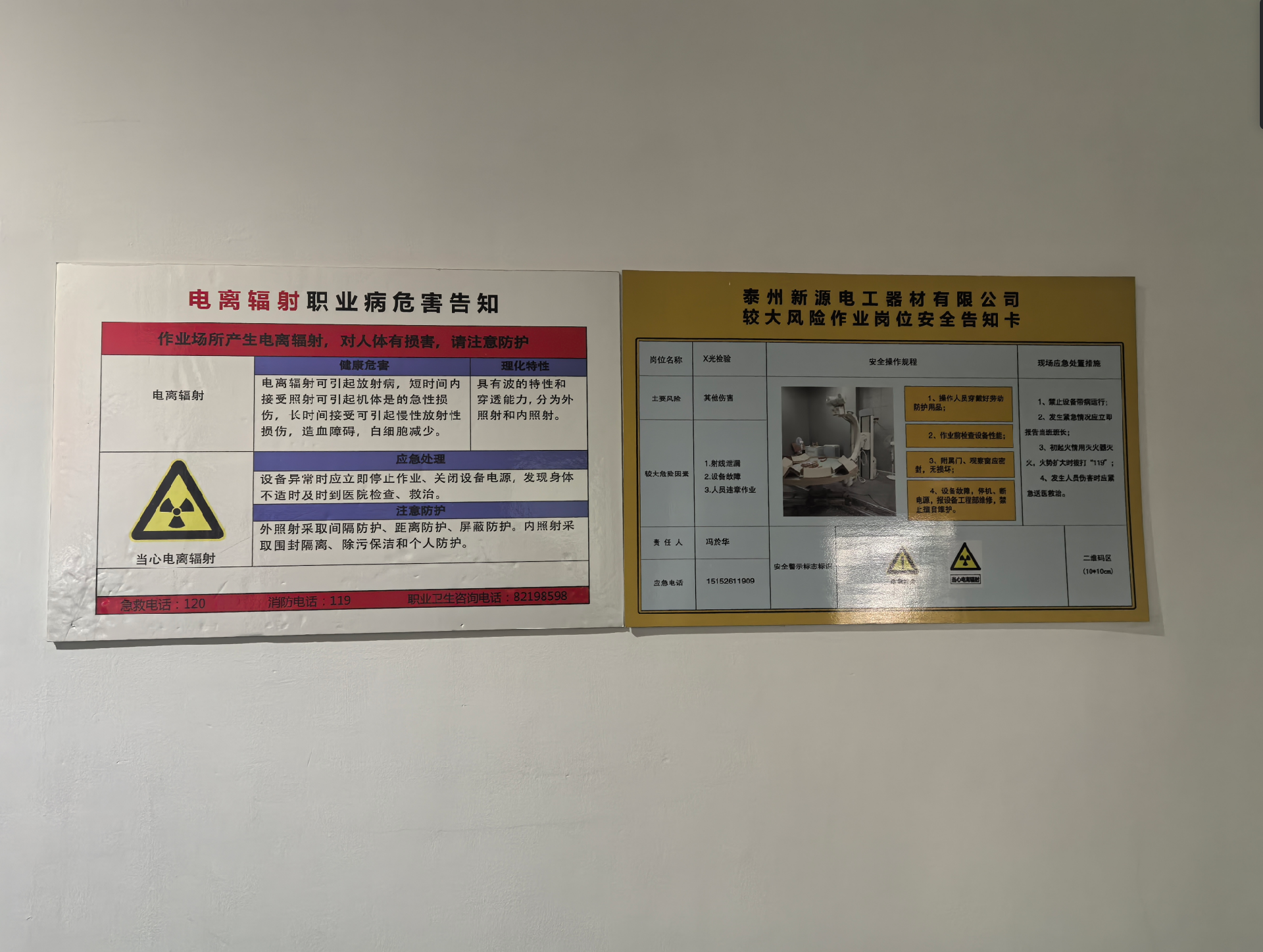 主要职业病 危害 | X、γ射线 | ||||||